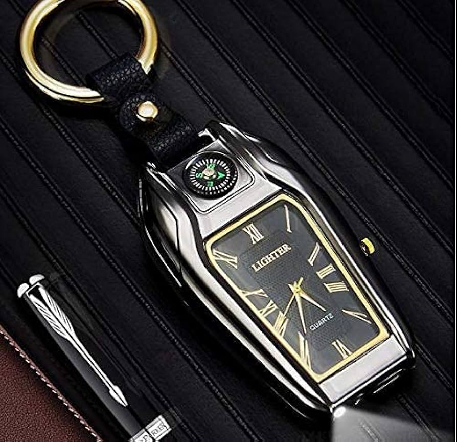 Luxury 4-in-1 Compass Watch Keychain un logon ke liye design ki gayi hai jo style ke sath smart functionality chahte hain. Is compact keychain mein arc plasma lighter, LED flashlight, working compass aur mini watch integrated hain — all-in-one daily carry solution.